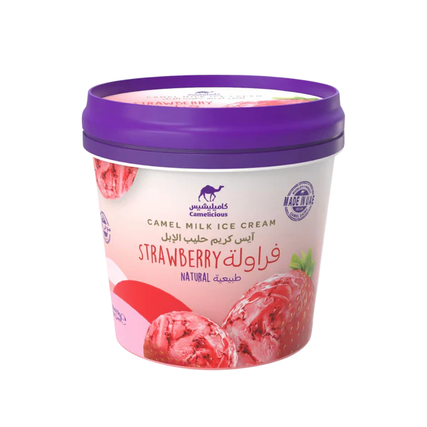 Enjoy the refreshing taste of Camelicious Camel Milk Ice Cream – Strawberry 125ml, made from premium camel milk and blended with delicious strawberry flavor. A smooth and creamy single-serve treat with a fruity twist.